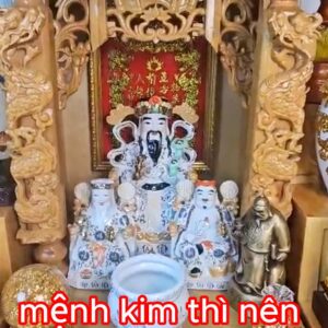 Đôi đèn lưu ly, túi vàng, bát tụ bảo, bài vị